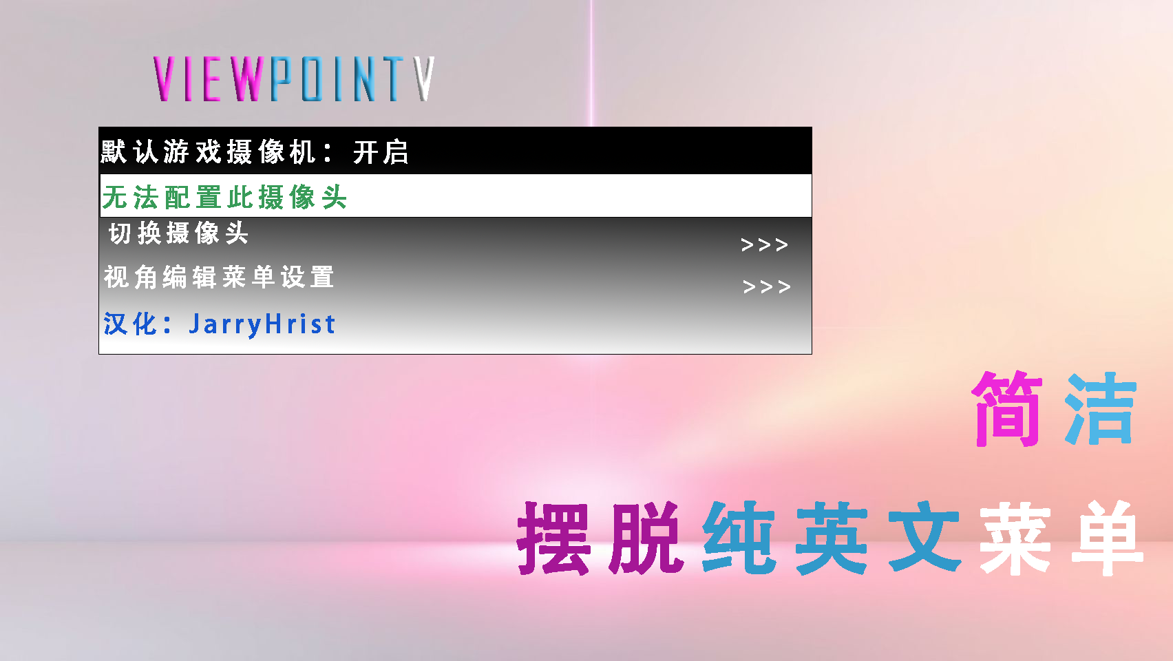 轻松切换相机:使用位于 中的文件中指定的可自定义热键在摄像机视图之间切换。Controls.iniscripts/ViewPointVLite