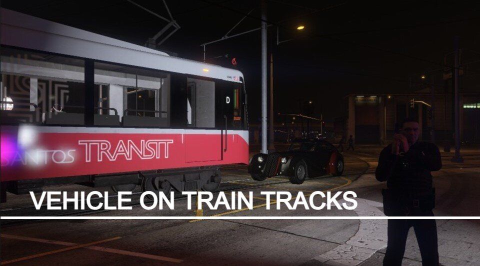 车辆卡在铁轨:车辆卡在铁轨上,火车即将驶来,需紧急救援。