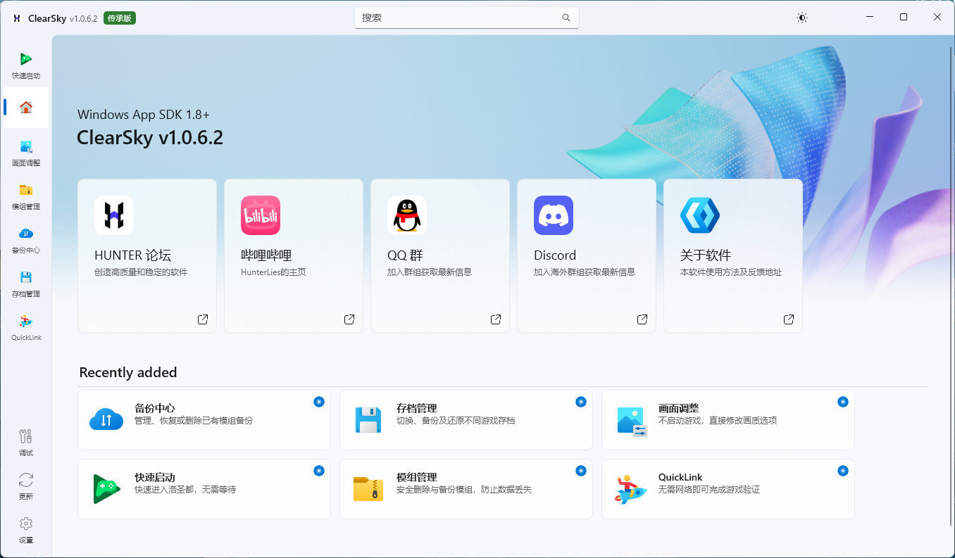 Clearsky 是一个轻量级工具箱,旨在解决模组玩家最常见的烦恼。我们相信,管理游戏应该和玩游戏一样轻松。
